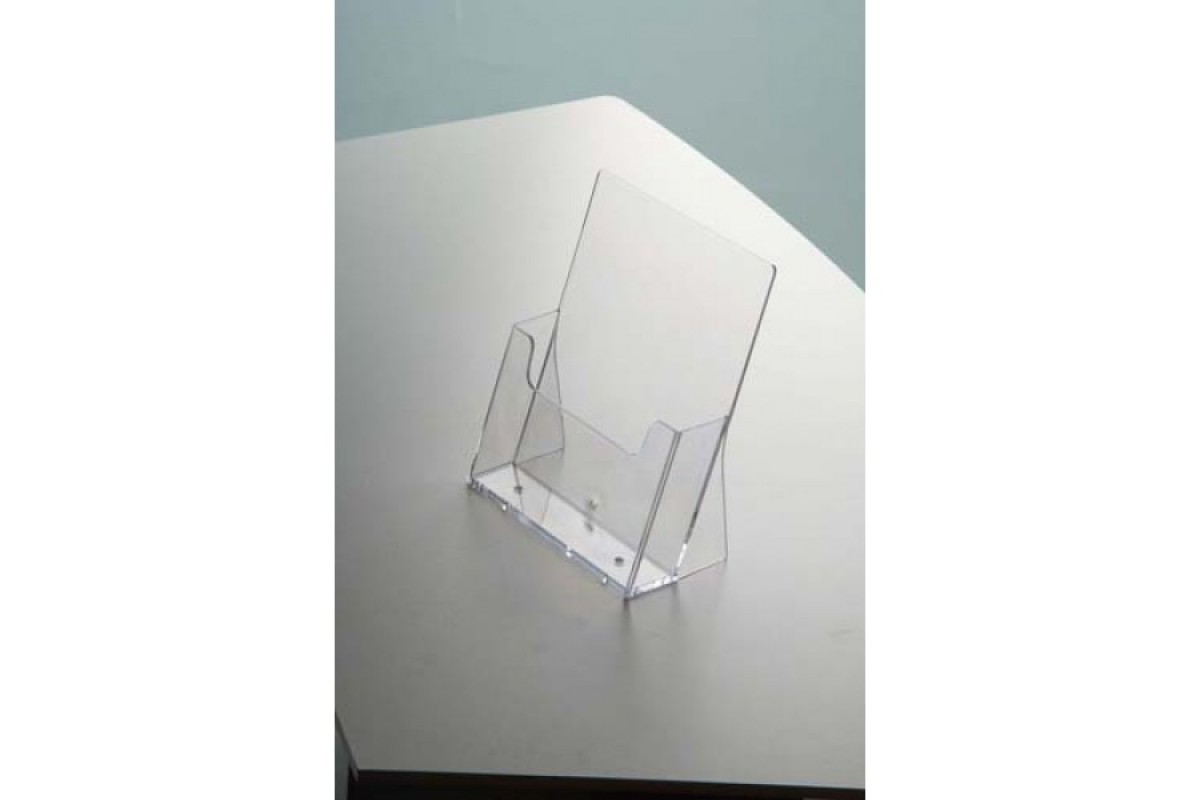 Porta depliant da banco realizzato in polistrirene trasparente.